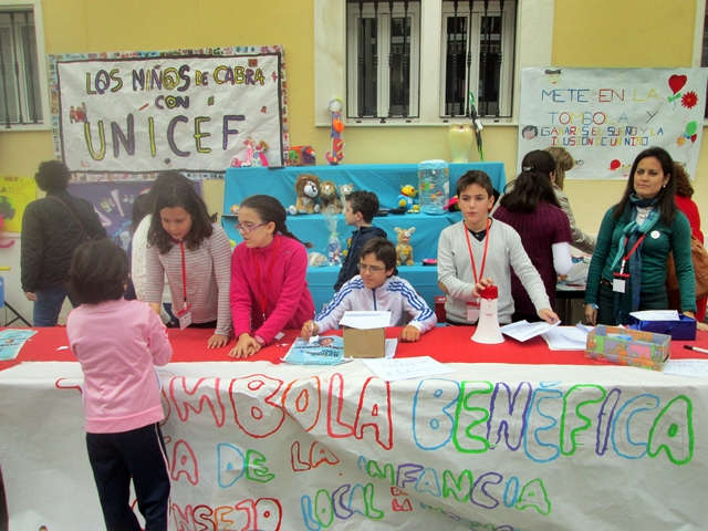 Entre estas actividades los niños y niñas del observatorio propusieron la idea de realizar una tómbola en benefício de las campañas de Unicef. Para ello han realizado recogida de juguetes y otros objetos para su puesta en la tómbola en los diferentes centros educativos de la localidad.